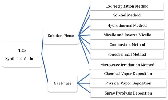 - TiO2 nanomaterials can be prepared at large scale, at mild temperatures and conditions. Some of the synthesis methods are listed in Figure 2 [47,48].