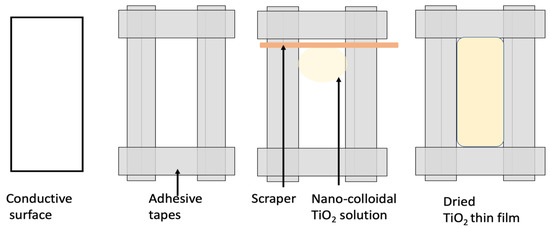 - Kamarulzaman, N.H.; Salleh, H.; Dagang, A.N.; Ghazali, M.S.M.; Ahmad, Z. Optimization of Titanium Dioxide Layer Fabrication Using Doctor Blade Method in Improving Efficiency of Hybrid Solar Cells. J. Phys. Conf. Ser. 2020, 1535, 012025. [Google Scholar] [CrossRef]