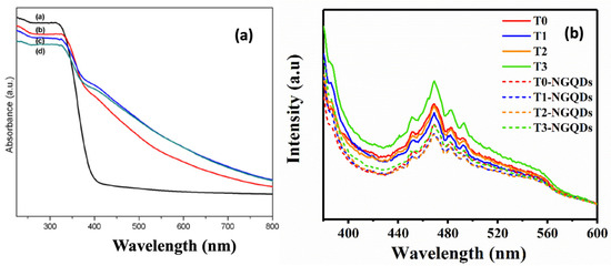 The basic properties of GQDs are mainly dependent on the shape, size, and edge structures, which play an active role in the positioning of absorption peaks in UV–Vis spectra. The other influential factors include functional groups, solvent exposure, and temperature exposure. As observed from multiple studies, GQDs show stronger optical absorption in the UV zone (260 to 320 nm) due to the p-p* transition of the C=C bonds, while the tail of its absorption spectra extends to the visible region [23]. Various GQDs demonstrate a sharp peak ranging between 270 and 390 nm, which shows a probable contribution from the n-p* transition of the C=O bonds.