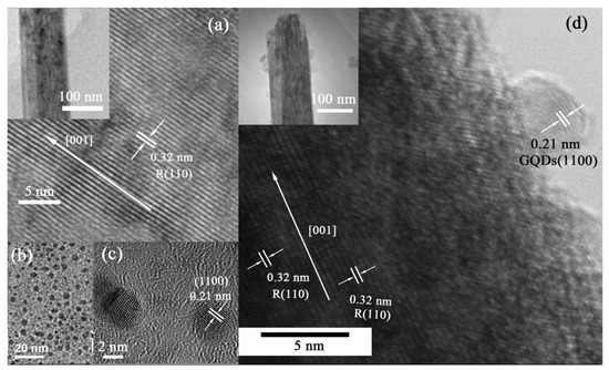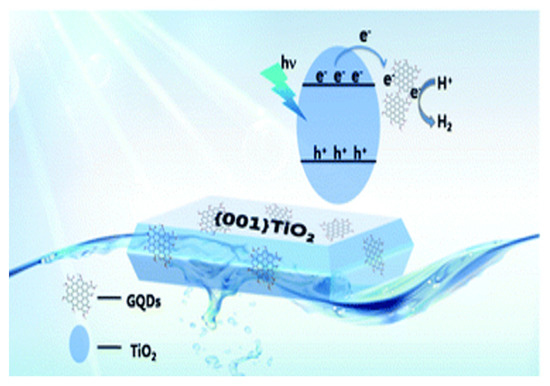 - Hao, X.; Jin, Z.; Xu, J.; Min, S.; Lu, G. Functionalization of TiO2 with graphene quantum dots for efficient photocatalytic hydrogen evolution. Superlattices Microstruct. 2016, 94, 237–244. [Google Scholar] [CrossRef]