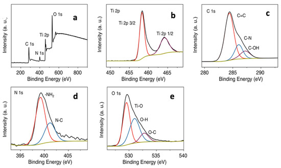 - Kim, S.; Moon, G.-H.; Kim, G.; Kang, U.; Park, H.; Choi, W. TiO2 complexed with dopamine-derived polymers and the visible light photocatalytic activities for water pollutants. J. Catal. 2017, 346, 92–100. [Google Scholar] [CrossRef]
