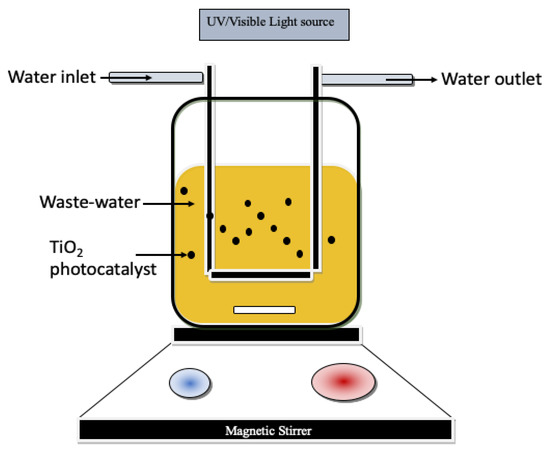 - TiO2 can be fabricated with interesting morphologies, such as nanospheres, nanorods, nanofibers, nanotubes, and nanosheets. This enables it to attain unique chemical, physical, and electronic properties, increasing its photocatalytic efficiency [45,46].
