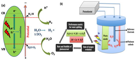- Kochuveedu, S.T. Photocatalytic and Photoelectrochemical Water Splitting on TiO2 via Photosensitization. J. Nanomater. 2016, 2016, 4073142. [Google Scholar] [CrossRef]