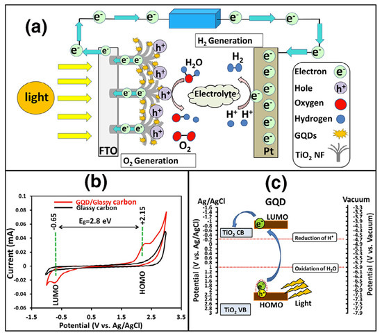 - Bayat, A.; Saievar-Iranizad, E. Graphene quantum dots decorated rutile TiO2 nanoflowers for water splitting application. J. Mater. Chem. A Mater. Energy Sustain. 2018, 27, 306–310. [Google Scholar] [CrossRef]