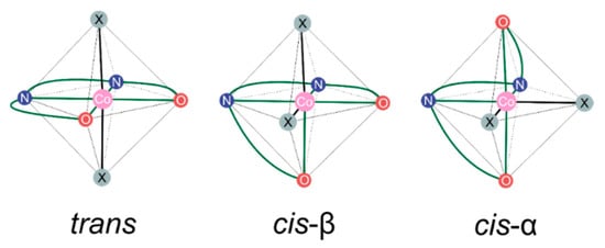 - Marzilli, L.G.; Buckingham, D.A. The stereochemistry of some cobalt(III) triethylenetetramine complexes of glycine and sarcosine. Inorg. Chem. 1967, 6, 1042–1052. [Google Scholar] [CrossRef]