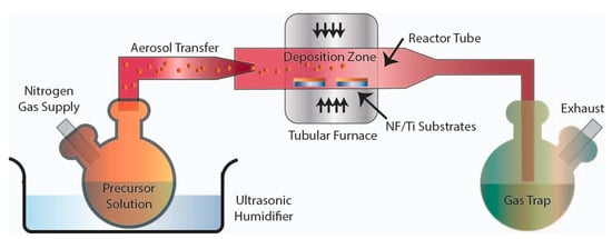 A schematic of custom-made aerosol-assisted chemical vapor deposition (AACVD) setup used for the deposition of Rh thin films.