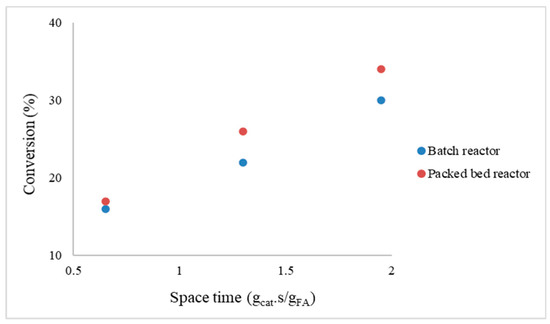 2.1.4. Comparison of Packed Bed Microreactor and Batch Stirred Reactor