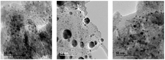 TEM images of 7% Pd/Al2O3 catalysts prepared with different precursors: (right) acetate, (middle) nitrate, (left) chloride. Reprinted from [77], Copyright (2021), with permission from John Wiley and Sons.