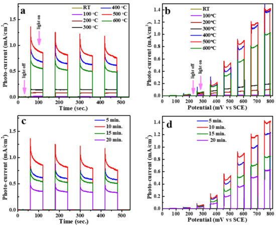 - Ko, T.-R.; Chueh, Y.-C.; Lai, Y.-H.; Lin, C.-Y. Simultaneous enhancement in charge separation and interfacial charge transfer of BiVO4 photoanode for photoelectrochemical water oxidation. J. Taiwan Inst. Chem. Eng. 2020, 111, 80–89. [Google Scholar] [CrossRef]