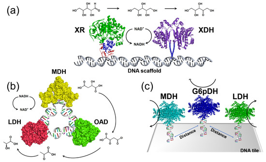 - Ngo, T.A.; Nakata, E.; Saimura, M.; Morii, T. Spatially Organized Enzymes Drive Cofactor-Coupled Cascade Reactions. J. Am. Chem. Soc. 2016, 138, 3012–3021. [Google Scholar] [CrossRef]