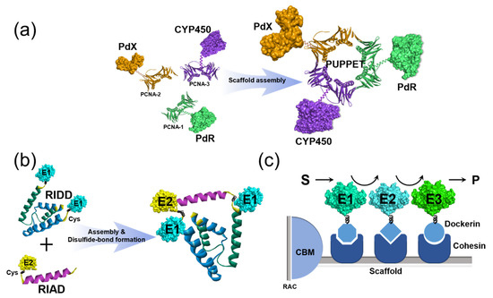 - Dueber, J.E.; Wu, G.C.; Malmirchegini, G.R.; Moon, T.S.; Petzold, C.J.; Ullal, A.V.; Prather, K.L.; Keasling, J.D. Synthetic protein scaffolds provide modular control over metabolic flux. Nat. Biotechnol. 2009, 27, 753–759. [Google Scholar] [CrossRef] [PubMed]