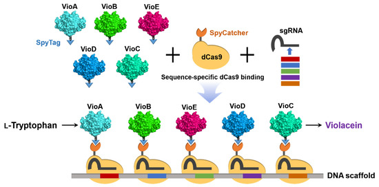 - Lim, S.; Kim, J.; Kim, Y.; Xu, D.; Clark, D.S. CRISPR/Cas-directed programmable assembly of multi-enzyme complexes. Chem. Commun. (Camb.) 2020, 56, 4950–4953. [Google Scholar] [CrossRef]