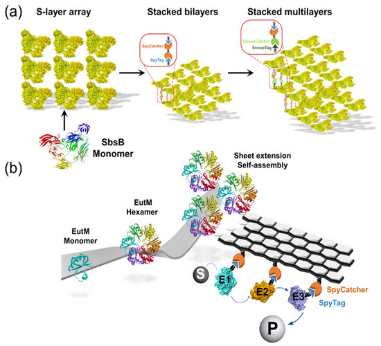 - Manea, F.; Garda, V.G.; Rad, B.; Ajo-Franklin, C.M. Programmable assembly of 2D crystalline protein arrays into covalently stacked 3D bionanomaterials. Biotechnol. Bioeng. 2020, 117, 912–923. [Google Scholar] [CrossRef] [PubMed]