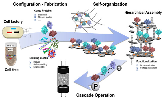 - Schmid-Dannert, C.; Lopez-Gallego, F. Advances and opportunities for the design of self-sufficient and spatially organized cell-free biocatalytic systems. Curr. Opin. Chem. Biol. 2019, 49, 97–104. [Google Scholar] [CrossRef] [PubMed]