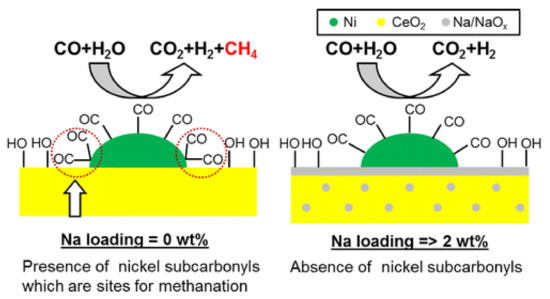 - Ang, M.L.; Oemar, U.; Saw, E.T.; Mo, L.; Kathiraser, Y.; Chia, B.H.; Kawi, S. Highly Active Ni/xNa/CeO2 Catalyst for the Water–Gas Shift Reaction: Effect of Sodium on Methane Suppression. ACS Catal. 2014, 4, 3237–3248. [Google Scholar] [CrossRef]
