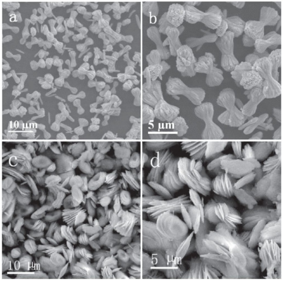 SEM images of CeO2-S (a,b) and CeO2-L (c,d). Reprint from [151]. Copyright (2020), with permission from Chemical Society of Japan.