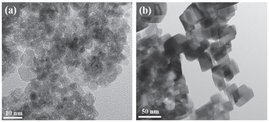 TEM image of high thermal resistant ceria after calcination at 400 °C (a) and 900 °C (b) under air. Reprint from [152].