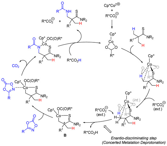 - Fukagawa, S.; Kato, Y.; Tanaka, R.; Kojima, M.; Yoshino, T.; Matsunaga, S. Enantioselective C(sp3)–H Amidation of Thioamides Catalyzed by a Cobalt III/Chiral Carboxylic Acid Hybrid System. Angew. Chem. Int. Ed. 2019, 58, 1153–1157. [Google Scholar] [CrossRef] [PubMed]