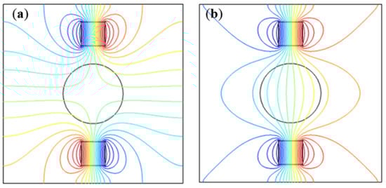 Depending on their possible relative arrangements (attraction (att) and repulsion (rep)), the two permanent magnets generated basically different magnetic fields (Figure 2). Therefore, two implementations should be considered for each agitation modes (XMatt and XMrep for the axial agitation mode, and RMatt and RMrep for the rotating agitation mode).