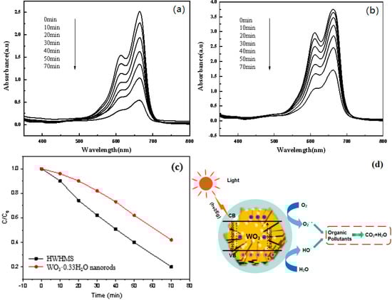 - He, X.; Hu, C.; Yi, Q.; Wang, X.; Hua, H.; Li, X. Preparation and Improved Photocatalytic Activity of WO3·0.33H2O Nanonetworks. Catal. Lett. 2012, 142, 637–645. [Google Scholar] [CrossRef]