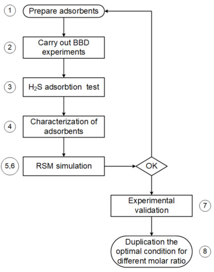 Step 3. The adsorption capacity was calculated using an H2S adsorption test and was determined for each of the 17 runs of the adsorbents.