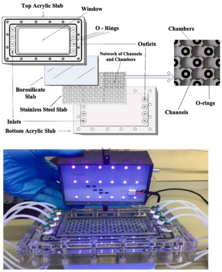 - Zacarías, S.M.; Manassero, A.; Pirola, S.; Alfano, O.M.; Satuf, M.L. Design and performance evaluation of a photocatalytic reactor for indoor air disinfection. Environ. Sci. Pollut. Res. 2020, 1–9. [Google Scholar] [CrossRef]