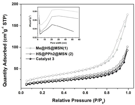 The nitrogen adsorption-desorption isotherms of one and catalyst 3.
