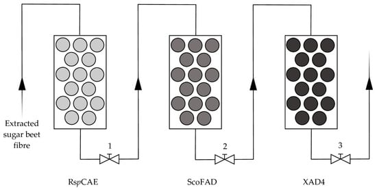 The setup of the bioprocess included the peristaltic pump Ismatec IPC-4 (Cole Parmer GmbH, Wertheim, Germany) and three columns including both immobilized enzymes and the activated adsorbent connected via tubing (Figure 6).