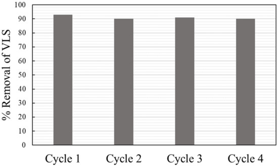 VLS removal for four consecutive runs using 0.25% MoS2/BiOCl.