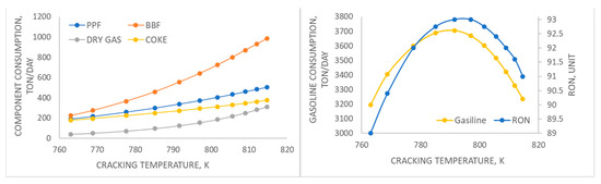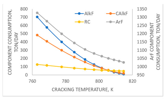 Figure 5 and Figure 6 show the effect of the main process variables on the cracking temperature and the latter on the consumption of product components.