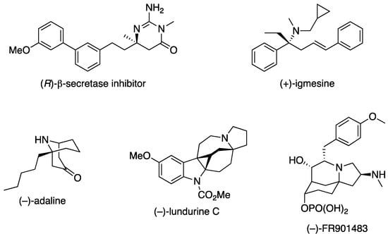 Examples of bioactive compounds and natural products bearing an α-tertiary amine stereogenic center.