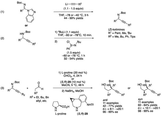2.4. Acyclic Ketimines Bearing Electron-Withdrawing Groups and/or Alkynes