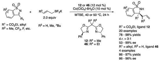 - Wu, L.; Shao, Q.; Yang, G.; Zhang, W. Cobalt-Catalyzed Asymmetric Allylation of Cyclic Ketimines. Chem. A Eur. J. 2018, 24, 1241–1245. [Google Scholar] [CrossRef] [PubMed]