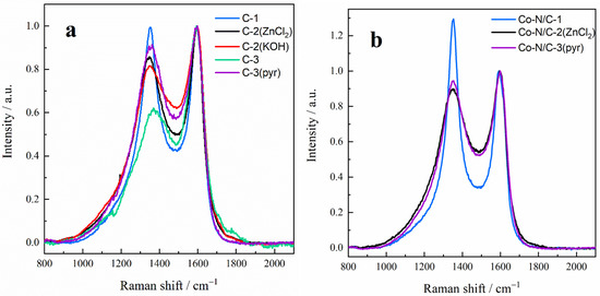 - Raman spectroscopy was applied to characterize the graphitization degree of the PDCs and Co-N/PDCs. Raman spectra were recorded using a Renishaw inVia Raman spectrometer (Renishaw, West Dundee, IL, USA) with a 514 nm laser line. OriginPro 2016 software (v2016, Originlab, Northampton, MA, USA, 2016) was used for data analysis [31].