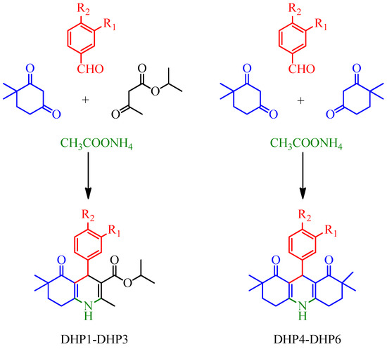 DHP-based compounds (DHP1-DHP6) were obtained according to modified Hantzsch synthesis. DHP-based hexahydroquinolines (DHP1-DHP3) and decahydroacridines (DHP4-DHP6) were synthesized as follows:
