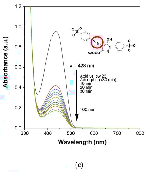 2.3. Kinetics Study for Photocatalytic Degradation of Azo Dyes