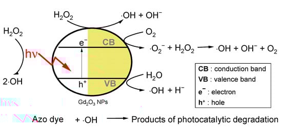 2.2. Mechanism of Photocatalytic Degradation of Azo Dyes by Gd2O3 Nanoparticles
