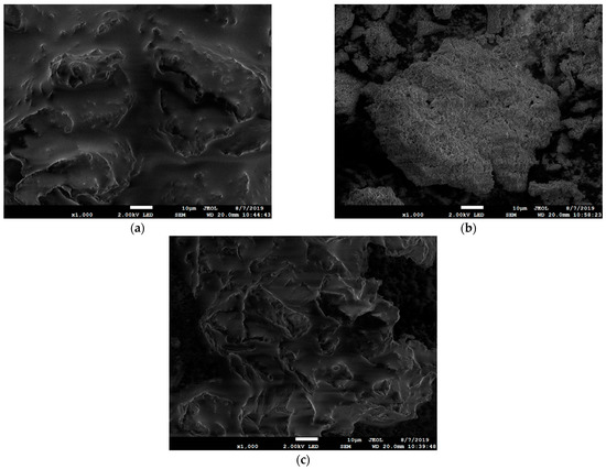 Scanning electron microscopy (SEM) of cells’ surface morphological alterations of the mamey seed samples by (a) non-extraction; (b) solvent extraction; and (c) aqueous enzymatic extraction.