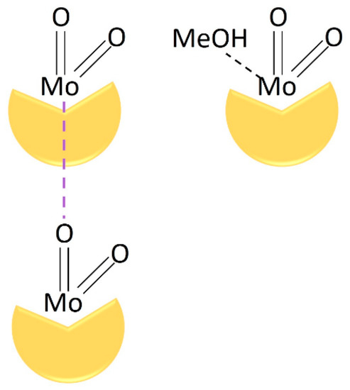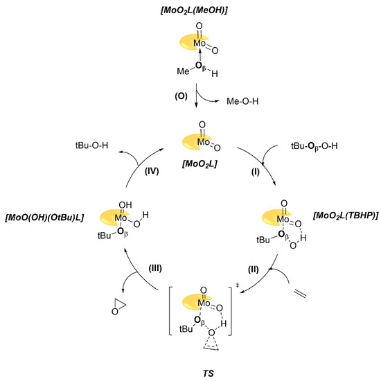 The following are available online at https://www.mdpi.com/article/10.3390/catal11070756/s1, Figure S1: Comparison of IR-ATR spectra of the complex [MoO2(L3OMe)(MeOH)] (pink) and [MoO2(L3OMe)]n (blue). Figure S2: Enumeration of atoms in the crystal structure of [MoO2(L3OMe)(MeOH)], Figure S3: Enumeration of atoms in the crystal structure of [MoO2(L4OMe)(MeOH)]·4,4-bpy, Figure S4: Crystal packing in the crystal structure of [MoO2(L3OMe)(MeOH)] shown parallel to crystal a-axis, Figure S5: Crystal packing in the crystal structure of [MoO2(L4OMe)(MeOH)]·4,4-bpy shown parallel to crystal b-axis, Figure S6: Comparison of molecular structures of: (a) and (b) [MoO2(L3OMe)(MeOH)] (blue) and [MoO2(L3OMe)(H2O)] (grey); (c) [MoO2(L4OMe)(MeOH)]·4,4-byp (pink) and (d) [MoO2(L4OMe)(MeOH)]·MeOH (grey). 4,4-bipyridine and methanol molecules are omitted for clarity. Small variations in crystal composition have a significant effect on complex geometry, Table S1: Geometrical parameters of the octahedral environment of molybdenum atom in the title complexes, Table S2: Bond lengths (in Å) and angles (in °) for the prepared complexes. Atom enumeration is shown in Figures S1 and S2, Table S3: Summary of general and crystallographic data for the prepared complexes, Table S4: Simplified images of all the calculated Mo-containing species, Table S5: Imaginary frequency (cm−1) of the calculated transition states shown in Table S1, Table S6: DFT Coordinates of all optimized species. CCDC 2085847-2085848 contains the supplementary crystallographic data for this paper. These data can be obtained free of charge from The Cambridge Crystallographic Data Centre via www.ccdc.cam.ac.uk/structures.