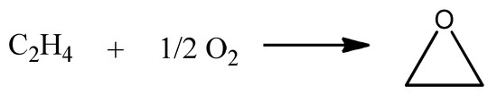 Ethylene is a thermally stable compound and for this reason, its oxidation at temperatures lower than 100 °C needs an active catalyst [15] finding several candidates as promising ones. Ethylene oxidation catalyzed by Ag is one of the most important chemical industry applications [22]. In Figure 2, the ethylene oxidation reaction is reported.