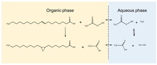 One drawback with the system is that it operates in several phases and therefore, the reaction velocity is limited by a slow mass transfer of the reactive species between the phases. Another drawback is that it works best with high-oleic acid (C18:1) vegetable oils, whereas the epoxidation of linoleic acid groups and higher unsaturation fatty acids, may sterically hinder the reaction [103].