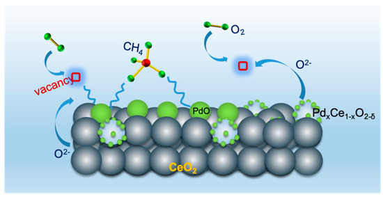 Schematic representation of the CH4 oxidation over the Pd/CeO2 catalyst.