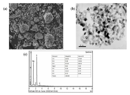 2.6. SEM, TEM and EDX Analysis of MgO-NPs