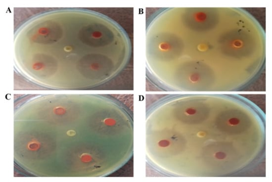 Assay picture of NPs against various strains (A) Helicobacter felis, (B) Helicobacter suis, (C) Helicobacter salomonis and (D) Helicobacter bizzozeronii.