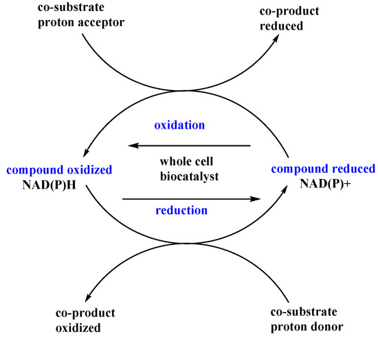 - Tassano, E.; Hall, M. Enzymatic self-sufficient hydride transfer processes. Chem. Soc. Rev. 2019, 48, 5596–5615. [Google Scholar] [CrossRef]