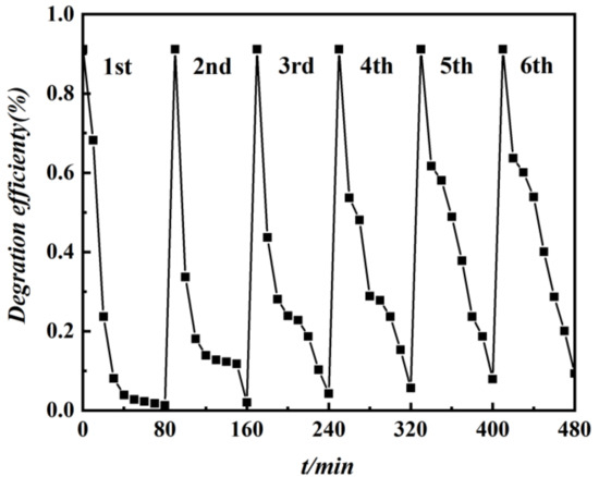 4.4. Repeatability Experiment of Photocatalytic Degradation