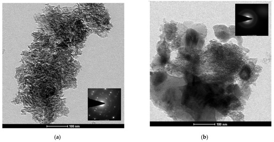 TEM images of the (a) RMP1-500 and (b) RMP2-500 samples.