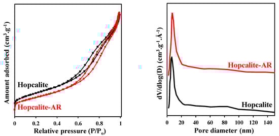 N2 adsorption–desorption isotherms and pore size distribution of fresh Hopcalite and Hopcalite after reaction (Hopcalite-AR).