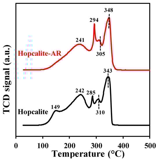 H2-TPR profiles of Hopcalite before and after reaction (Hopcalite-AR).