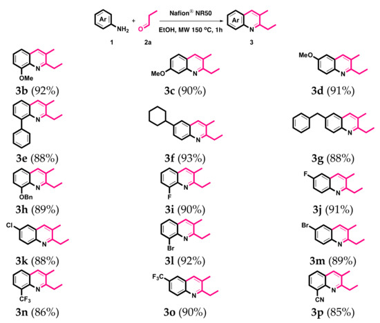 Environmentally Friendly Nafion-Catalyzed Synthesis of Substituted 2-Ethyl-3-Methylquinolines from Aniline and Propionaldehyde under Microwave Irradiation